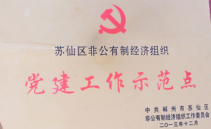 | 公司获苏仙区非公有制经济组织党建工作示范点 |